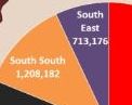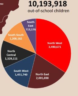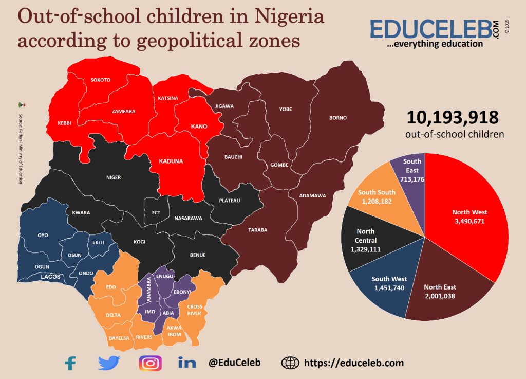 The numbers of the southern east school children of Nigeria are over 713, 170 while the numbers south south school children of Nigeria are over 1, 208, 180.